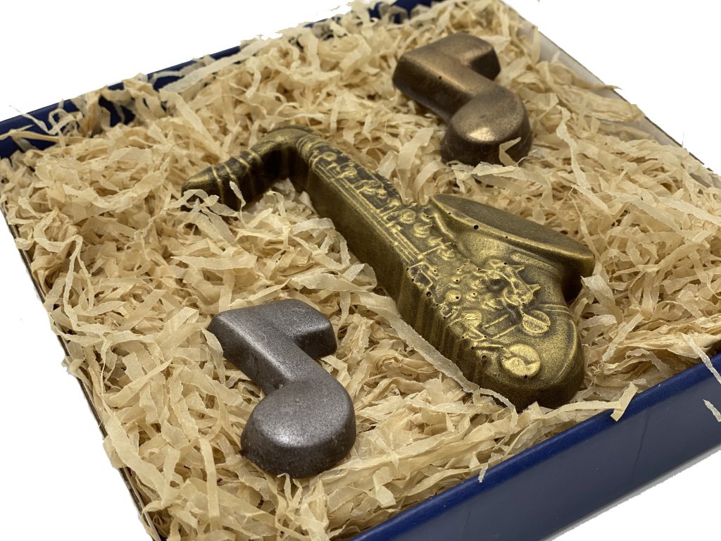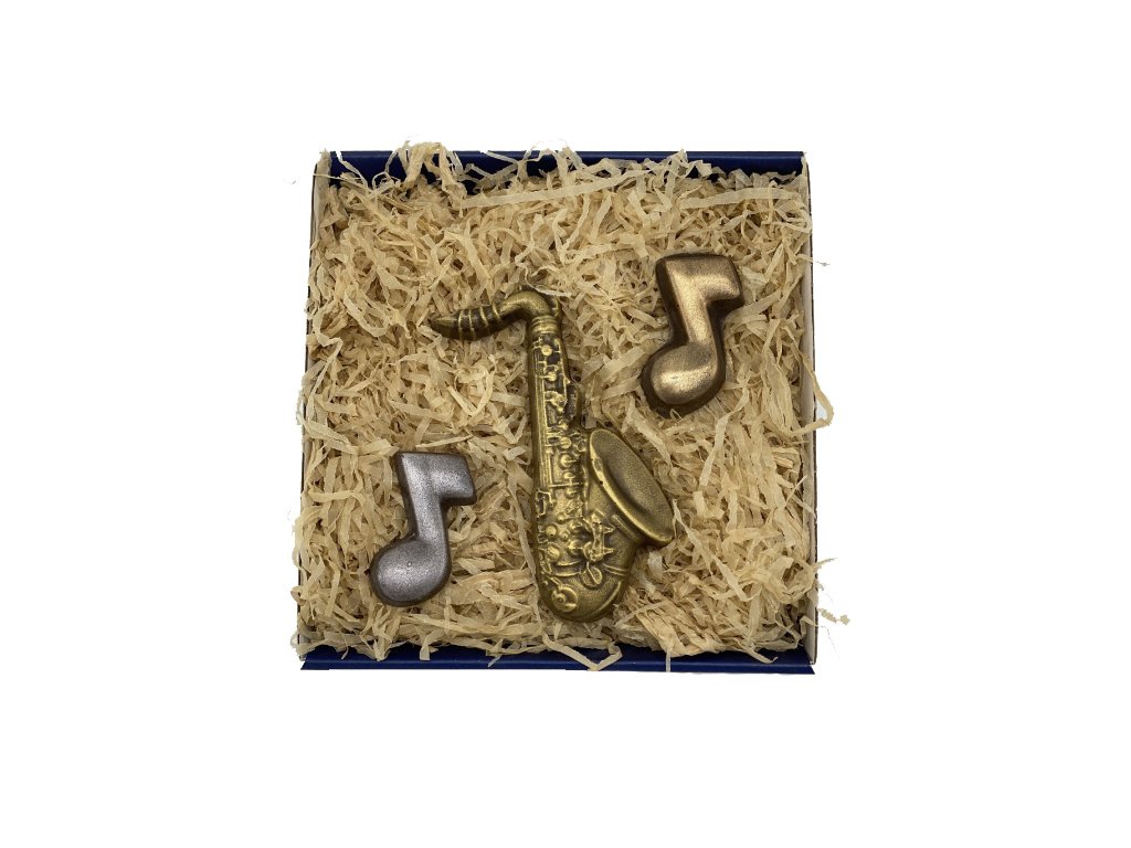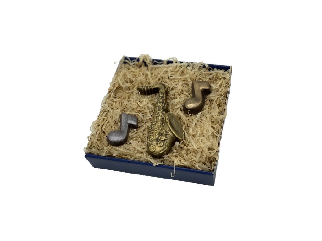 Originální sada saxofonu vyrobena z vynikající čokolády s obsahem min. 58 % kakaa.